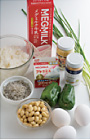 大豆とじゃこのカレーチャーハンを作る。大豆は汁気があればきっておく。ピーマンは1cm角に切る。 |