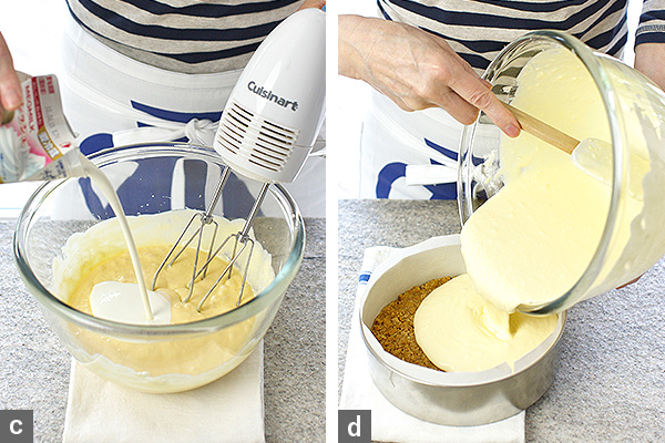 - 1. クリームチーズとバターは室温に戻す。型の底と側面に合わせてクッキングペーパーを敷く。オーブンは170℃に予熱しておく。