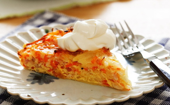 チーズの色づいたところがおいしそうなキッシュ。前菜やつけ合わせにもなります。