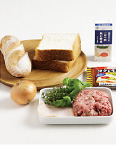 | 2 | 深めの小さいフライパンにサラダ油を熱し、玉ねぎを加えて炒めてからハム、ひき肉を入れて炒める。 |