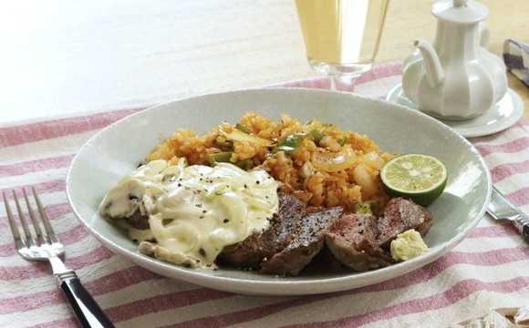 暑さに負けたくないからおいしいステーキライスで元気をつけています