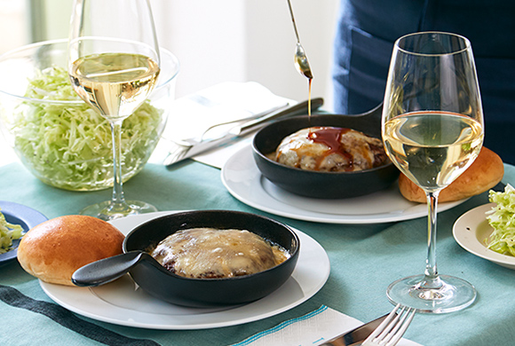 甘辛だれとチーズをのせたハンバーグ、焼きたてをめしあがれ。