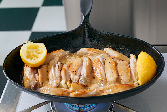 バター鶏手羽はレモンを効かせてさわやかに。ワインも進む味です。