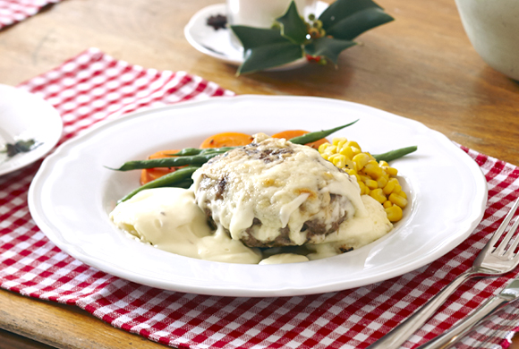 大きめのステーキと熱々のグラタンをクリスマスのごちそうに