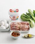 | 7 | 器にごはんを盛り、(6)の青梗菜炒めをのせて(4)の甘辛だれ少々をかける。焼き上がった(3)のみそ焼きチキンを食べやすく切ってのせ、わさびを添え、すだちを絞る。好みで半割りにした酢じょうゆ卵と漬けものを添える。 |