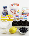 | 9 | 型から出してペーパーをはずし、表面にブルーベリーソースを塗り、周囲に生のブルーベリーとミントを飾る。 |