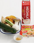 | 7 | 野菜を焼く間に白みそチーズソースを作る。小鍋に牛乳とみそを入れ、火にかけて混ぜる。みそが溶けたらチーズを加えてよく混ぜる(写真b)。 |