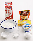 | 4 | (3)に(1)のクリームチーズ(写真a)、牛乳を順に加えてさらに混ぜる。 |
