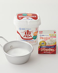 | 3 | (2)の鍋底を氷水にあてて冷ますか、金属やホーロー容器に(2)を流し入れて氷水で冷ます。 |