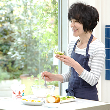 料理やデザートに、私は以前から水切りヨーグルトを愛用しています。ポテトサラダにちょっと加えるだけでも仕上がりがマイルドです。ヨーグルトは水切り時間によってやわらかさや濃厚さが変わるので、うちの冷蔵庫には軽く水切りしたヨーグルトとしっかり水切りしたヨーグルトの両方を常備。レシピに合わせて使い分け、前菜やサラダ、おかずのレシピを広げて楽しんでいます。