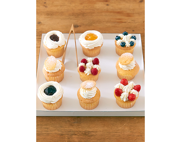 同じ生地をマフィン型6個分に流し、170℃に予熱したオーブンで約15分焼いて冷ます。「フレッシュ 北海道産生クリーム使用」1パック(200ml)にグラニュー糖大さじ3~4を加えてよく泡立てたクリームを絞り、ベリー類やジャムをのせたり、ケーキの表面をくりぬいてくぼみにクリームを絞り、くりぬいた部分をのせて粉糖をふる。