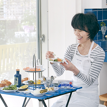 4月の肉料理に続き、5月は魚料理をおいしくする万能クリームチーズソースの使い方です。ポイントは料理に合わせてソースにひと味加えるところ。サーモンマリネにはさわやかなハーブ、ディルを加えたソースを添え、アジフライサンドにはきゅうりのピクルスと玉ねぎのみじん切りを加えたソースをかけます。それぞれのクリームチーズソースの繊細な味が魚のおいしさをぐんと引き立ててくれます。