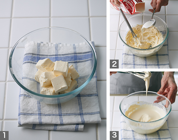 - 1. クリームチーズは小さく切って常温でやわらかくする。