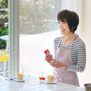 朝、スタッフが集まって仕事を始める前や午後のひととき、お茶と手作りの甘いものを用意しておくのが私の長年の決め事です。クロワッサン・ダマンドを目指して作ったアーモンドトーストは、カフェオレと一緒に朝ごはん代わりにする人もいて、焼きたてが大人気。バゲットで作るとラスクみたいです。練乳プリンは練乳の甘さを生かしたコクのあるプリンで、疲れたときや仕事がはかどったときのごほうびに、自分にも作りたくなるおやつです。