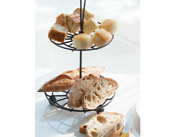 パンはかごに盛るばかりではつまらないので、ときには2段のトレーやスタンドに載せて食卓に。