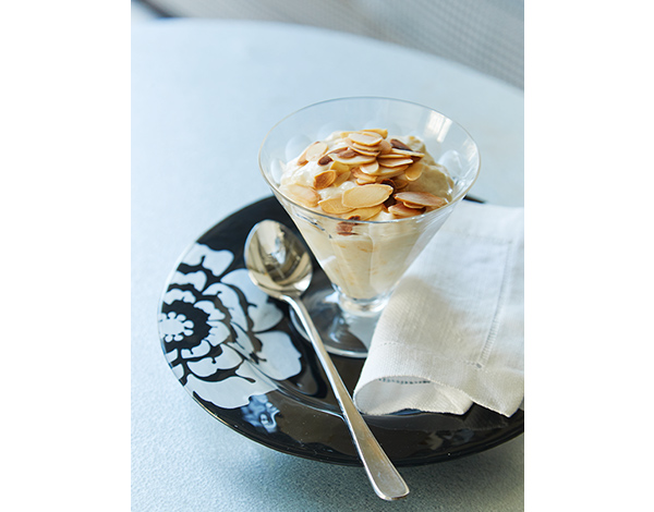 仕上げのキャラメリゼを省き、ローストしたスライスアーモンドを散らすだけでもバナナヨーグルトの気楽なデザートが楽しめます。