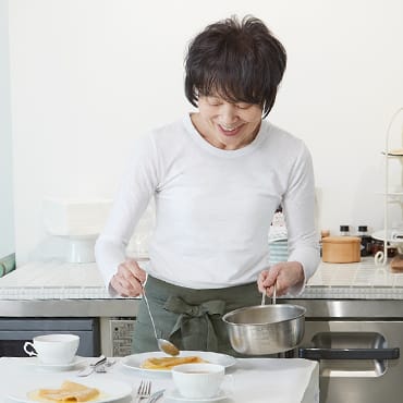 もう一品は、オレンジの果実や果汁、そして皮も香りづけに使って作るそば粉のクレープシュゼットです。オレンジの絞り汁にバターを加えたソースは、さわやかで濃厚なおいしさ。やわらかなクレープを引き立てます。夏のデザートに作ってみてください。