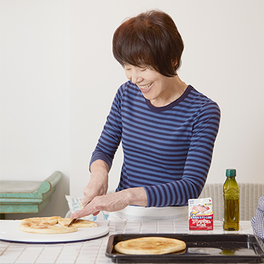 もうひとつは、チーズフォンデュピザ。2種のチーズに白ワインとクリームを加えてとろりと溶かし、ピザ生地に広げて焼き上げます。簡単なのに、まるでお店で食べるような本格的な味。チーズの塩味とはちみつの甘みが驚くほどよく合い、ついつい手が止まらなくなるおいしさです。焼きたての熱々を、ぜひ楽しんでください。このチーズソースは、ピザにのせるだけでなく、好みの野菜やパンを添えてチーズフォンデュとして食べるのもおすすめです。こちらもぜひ試してみてください。