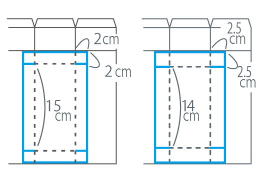 牛乳パック2こを切り開いて、図のような大きさに切ります。