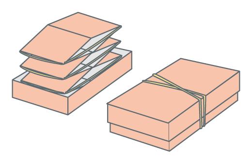 図のようにひだの部分をおりこんで、ふたをして、輪ゴムでとめます。