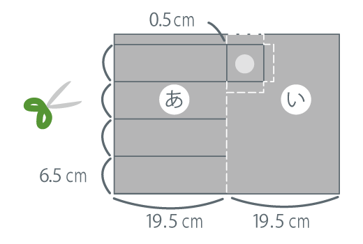 〈あ〉の丸い穴は、直径(ちょっけい)を4cmくらいに、切りぬきます。 -