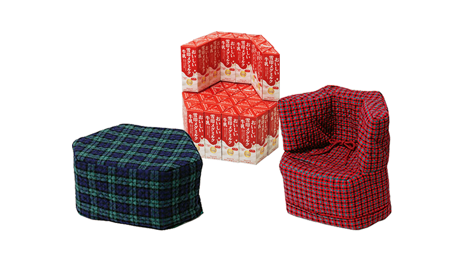 たくさんの牛乳パックで作るイスです。背(せ)もたれあるものとないもの、2タイプをご紹介(しょうかい)します。背もたれがないものは踏み台としても使うことができます。