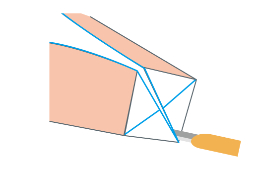 底面が十文字(じゅうもんじ)になるように切ります。 -