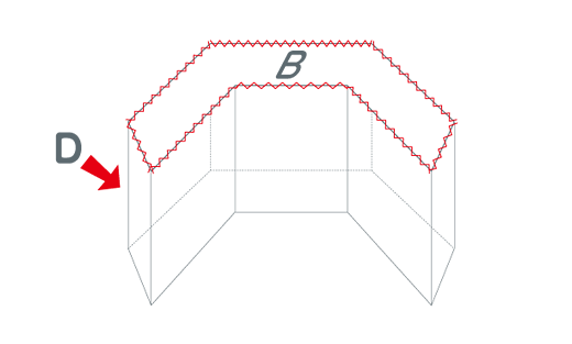 Dを輪(わ)にしてBと縫(ぬ)い合わせます。