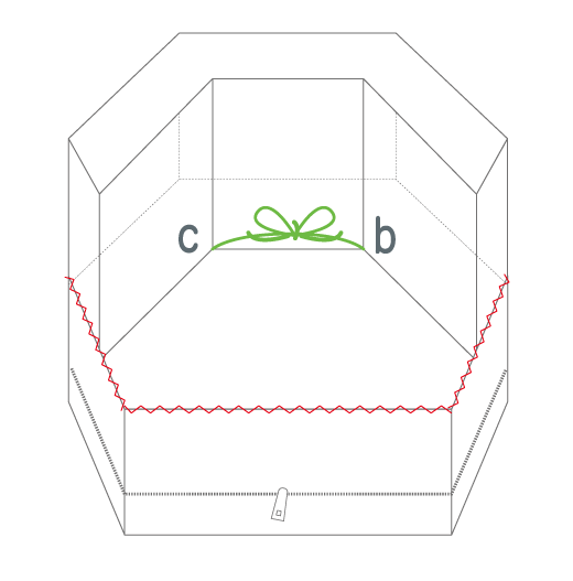 b、cの位置(いち)にひもをつけます。