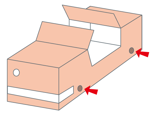 車軸(しゃじく)をとおす位置(いち)に千枚(せんまい)どおしで両側(りょうがわ)2かしょずつ穴(あな)をあけます。