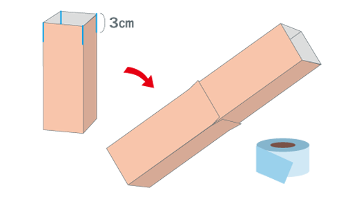 牛乳パックの、屋根(やね)や底(そこ)を切るときは、とても硬(かた)いので、大人(おとな)のひとにてつだってもらいましょう。
