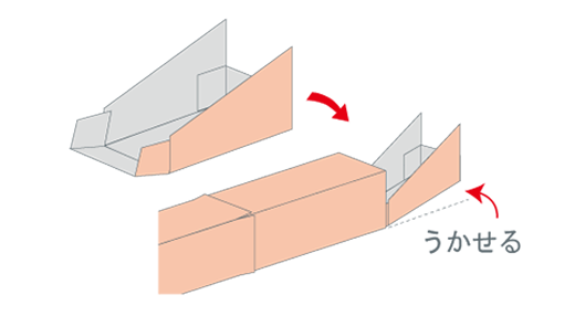 1つは、図(ず)のように切り込みを入れ、もう1つを差し込み、つなぎ合わせします。