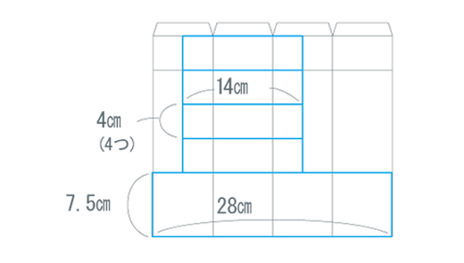 7つ目の牛乳パックは開いて、4cm×14cmを4つ、7.5cm×28cmを1つ切ります。