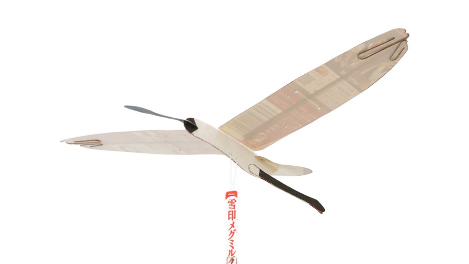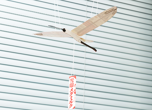つばさの上に、2つにわったわりばしを、それぞれはり付けます。