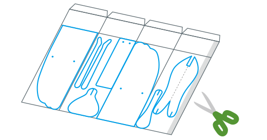 胴体(どうたい)をふたつに折り(おり)、はり付けます。