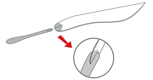 胴体の切り込みに、くちばしの切り込みをさし込み、はり付けます。 -