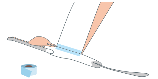 尾羽の下に、足をはり付けます。反対側も同じようにはり付けます。 -