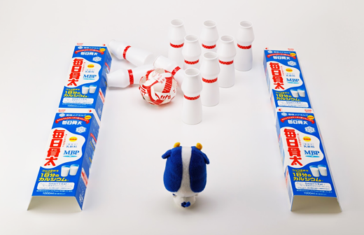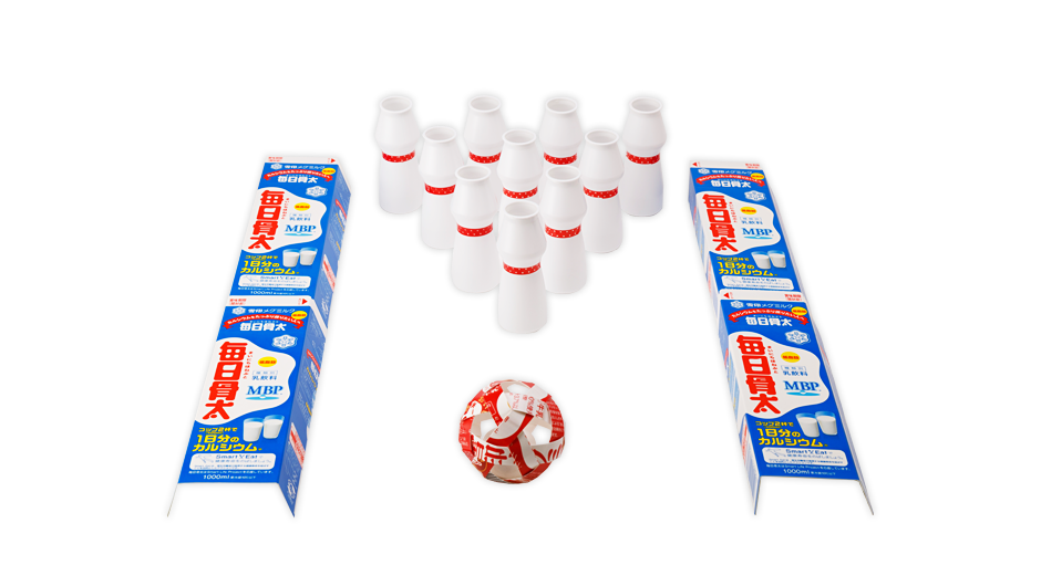 床(ゆか)にピンを10本ならべて、ボウリングを楽しもう!
