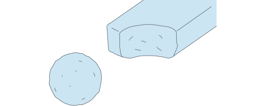 粘土(ねんど)は、直径(ちょっけい)3~4cmくらいの大きさに、丸めておきます。