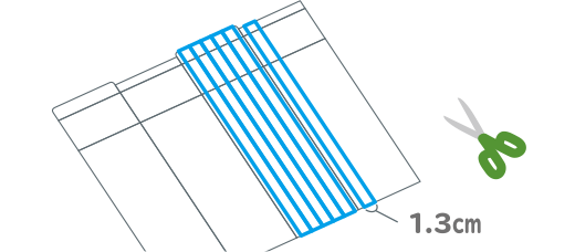 牛乳パックは開いて、1.3cm幅(はば)のオビ状に、6本切ります。