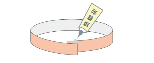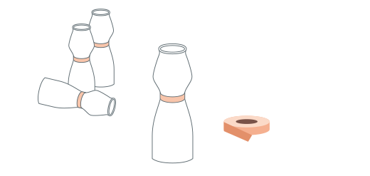 ドリンクヨーグルトの容器(ようき)の、クビレの所に、赤いカラーテープを巻きます。