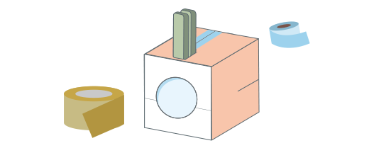 虫めがねを底の内側(うちがわ)に当てて、ガムテープでしっかり固定(こてい)します。