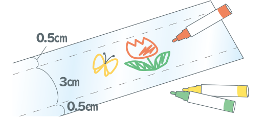 真ん中の3cm幅の部分に、油性ペンで絵をかきます。