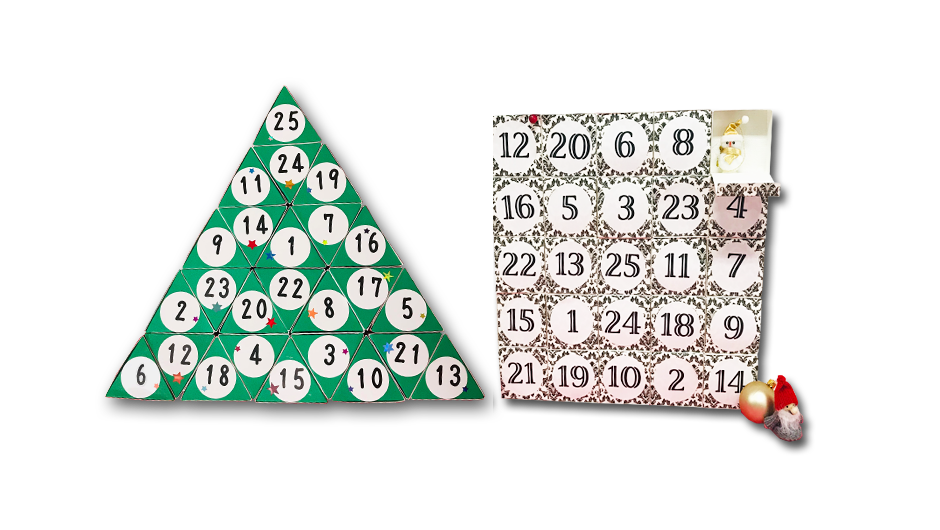 ※アドベントカレンダーとは、クリスマスまでの期間の日数を数えるために使用されるカレンダーです。