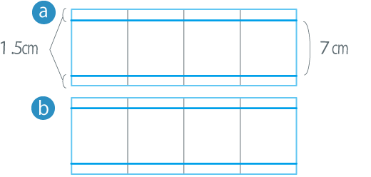 左図のように、半分にします。それぞれを上下1.5cm程に軽く折り曲げておきます。