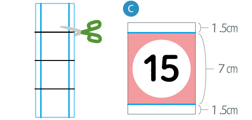 さらに4つに切り、(C)の形を25枚つくります。