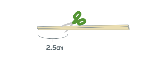 片方の割りばしを切って長短(ちょうたん)2つに分けます。
