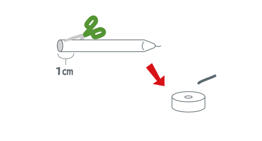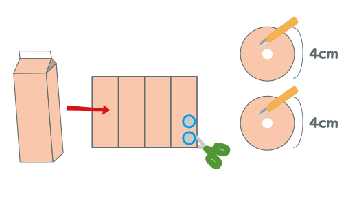 4cmの丸を切(き)り抜き、切(き)り抜いた中心の丸に穴をあけます。 -
