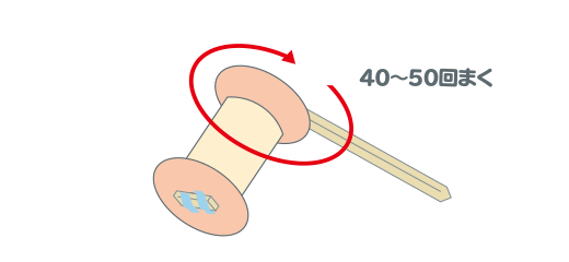 糸巻きが動かないように、おさえて〈6〉にミクちゃんをかぶせます。