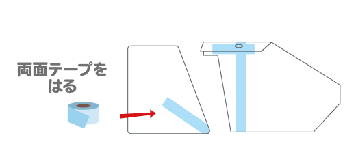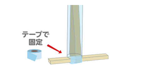 2.5cmに切った割りばしを通してゴムかけを作り、テープで固定します。